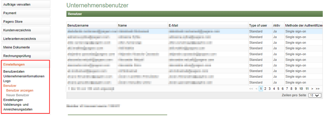 . Hier sehen Sie eine Liste aller aktuellen Benutzer Ihres Unternehmens.