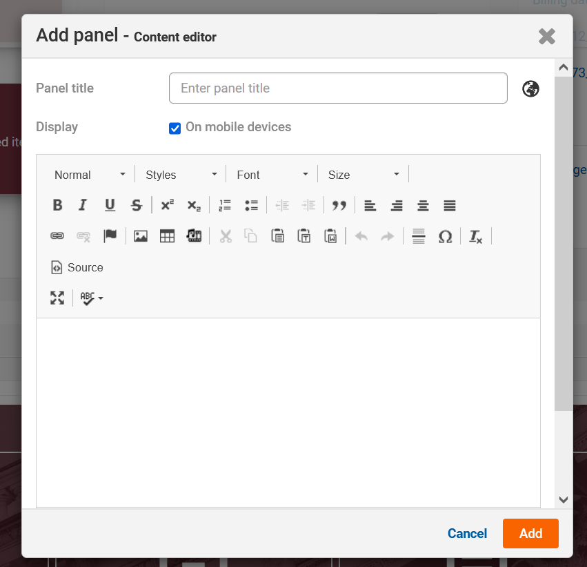 Give your panel a title and select whether you want it to display on mobile devices.