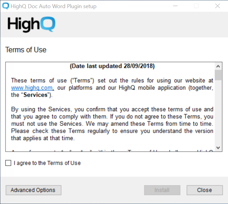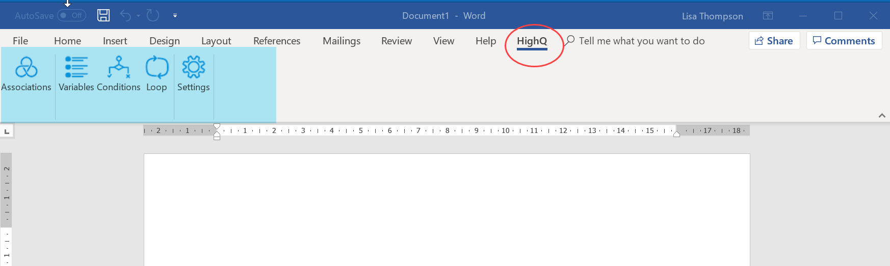. To see the plugin working, open Microsoft Word. The HighQ tab will now display as a ribbon option at the top.