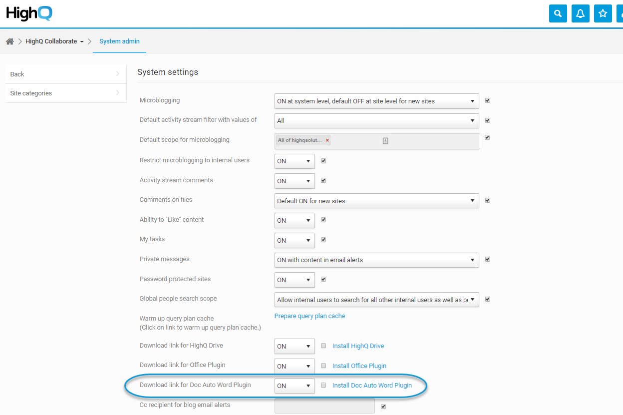 . The option can be found in System Settings and then set the Download Link for Doc Auto Word Plugin to