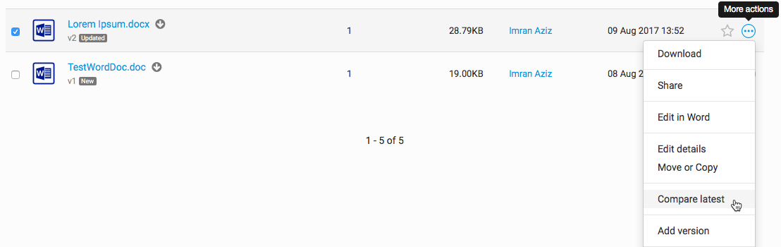 Firstly, you must ensure that document comparison is enabled. This is something you must contact your CSM or HighQ support for help with.
