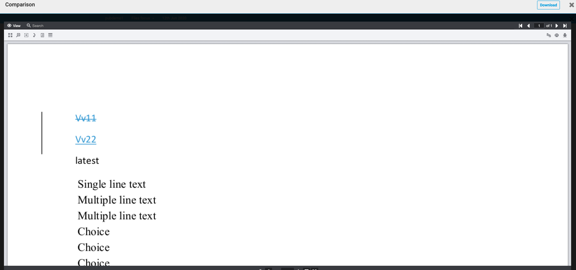 Once the above settings are enabled and set up, you can compare your documents using the Accusoft viewer.