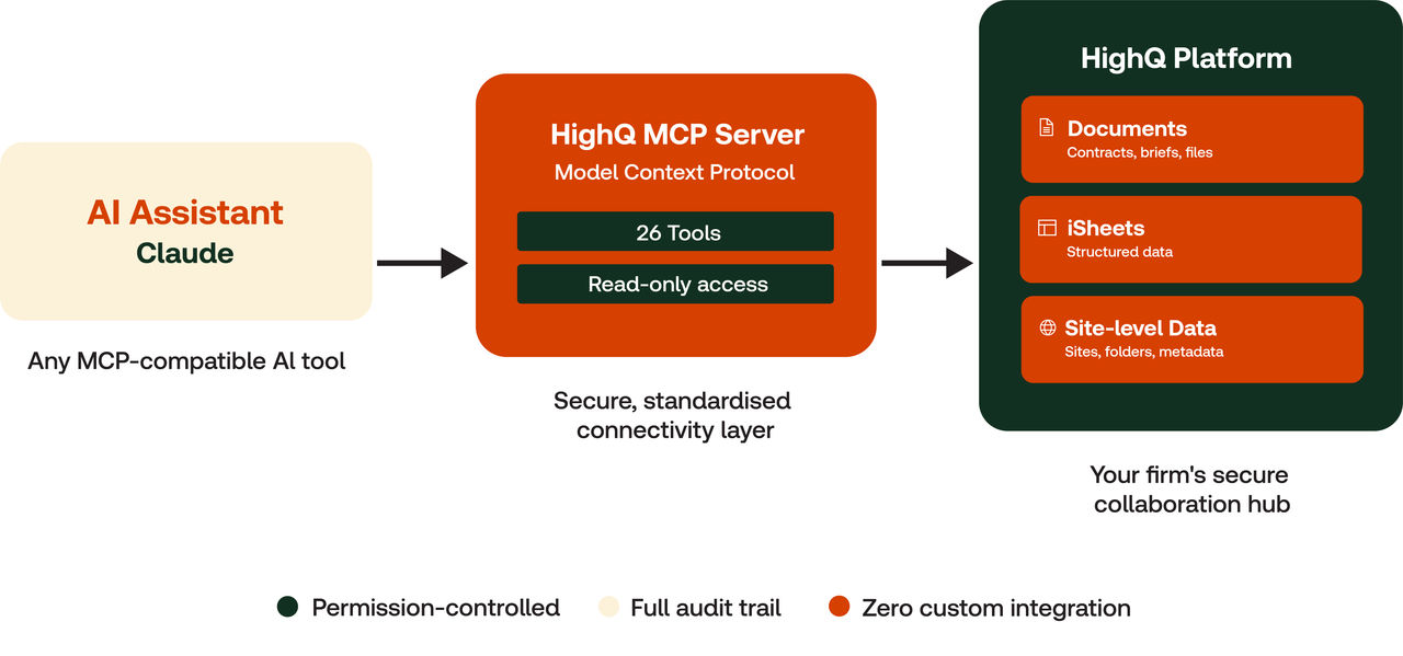 Manually extract data from multiple HighQ sites, consolidate it in Excel, create reports, and update them whenever data changes. | Create a comprehensive portfolio summary across all my HighQ sites showing total document counts, active tasks, and last activity date for each site. |