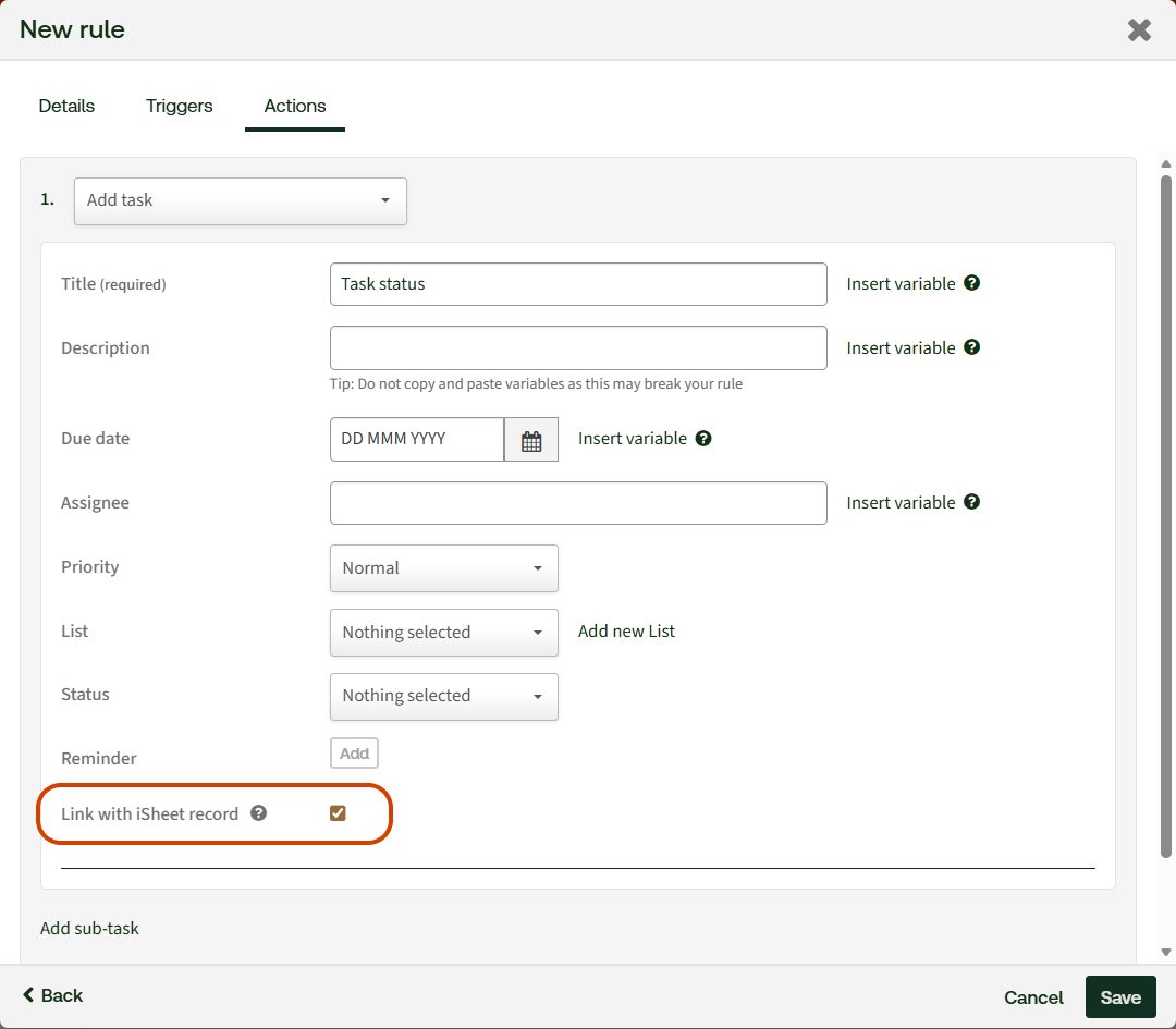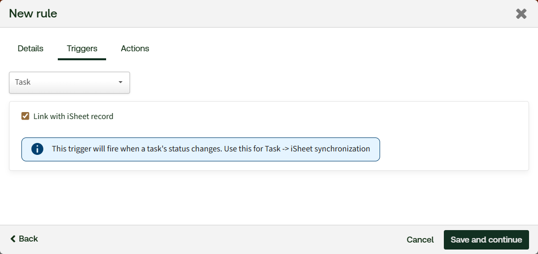 Version your workflows (e.g., 'Task-iSheet Sync v1.1') and add a description of the mappings.