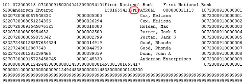 Individual Name (PPD) / Receiving or Company Name (CCD) |