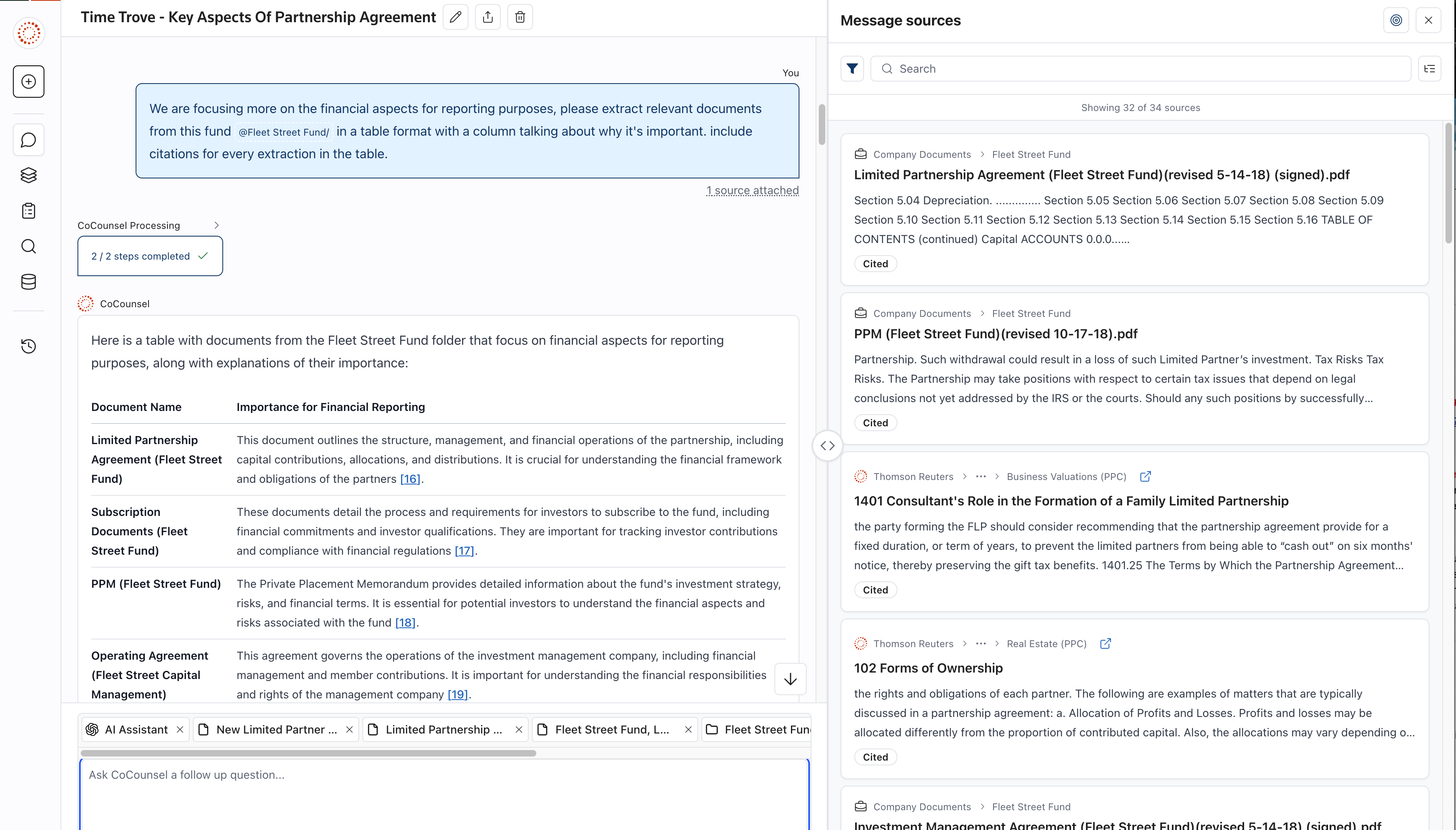 Conversations provide a flexible environment where you can explore complex topics, refine your research, and incorporate authoritative sources without losing context. This makes them especially valuable for workflows that involve a mix of firm knowledge, external research, and AI-powered interpretation.