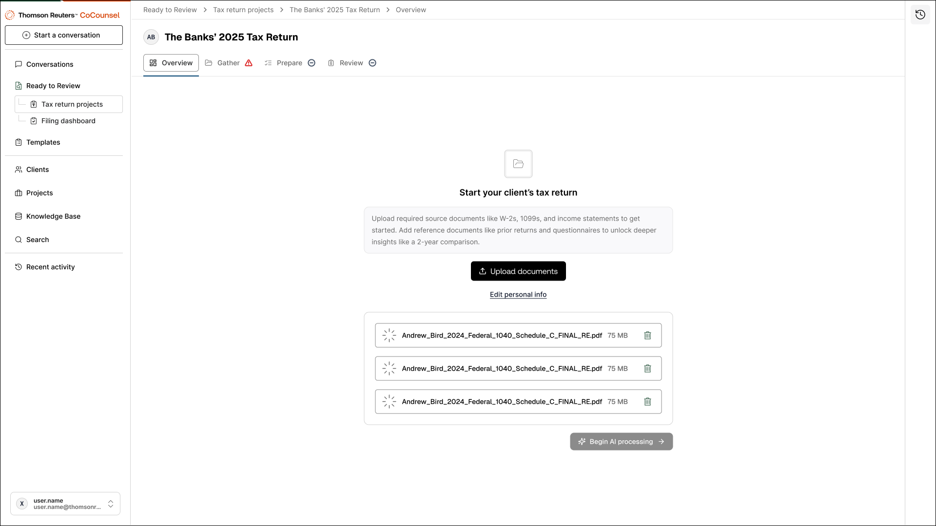 • Upload multiple documents simultaneously.