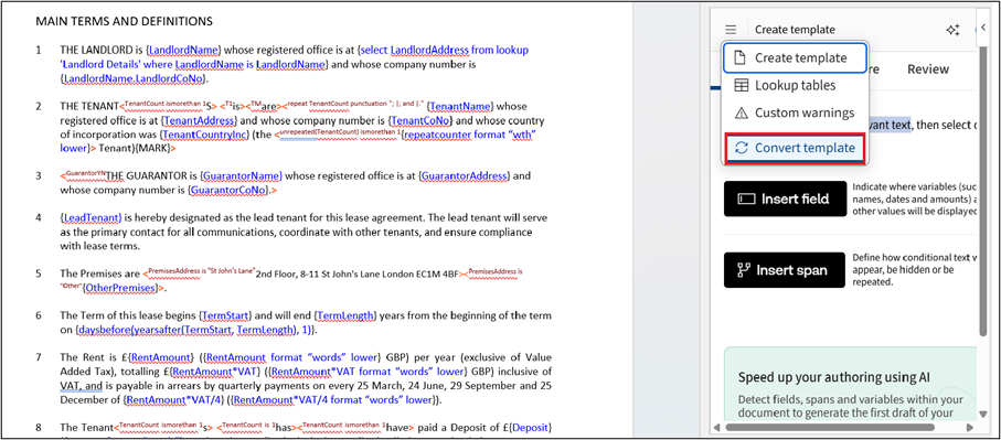 Re-use existing variables from an existing template by importing them before running AI Field Detection to ensure they are matched with detected fields.