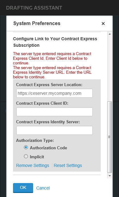 • Contract Express Client ID for Drafting Assistant