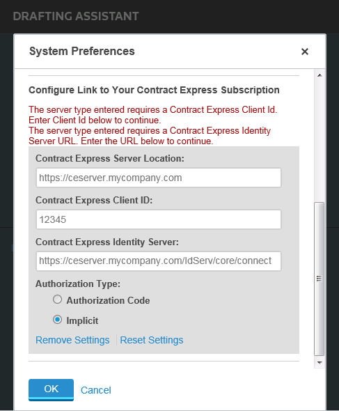 6. Enter your Contract Express Client ID for Drafting Assistant in the