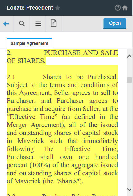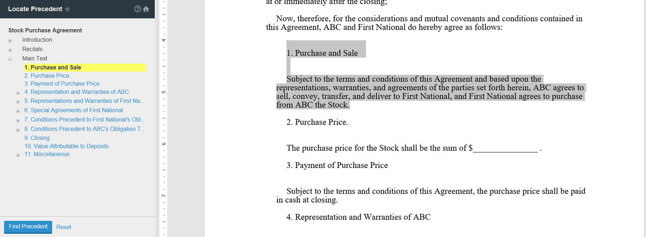 ) to expand/collapse the outline. The section you select is highlighted in the document text on the right.