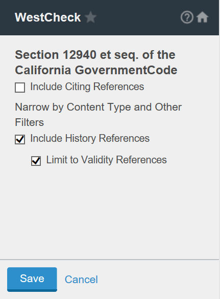 Use KeyCite Limits in WestCheck to filter case and statute results by category, helping you focus on the most relevant KeyCite information.