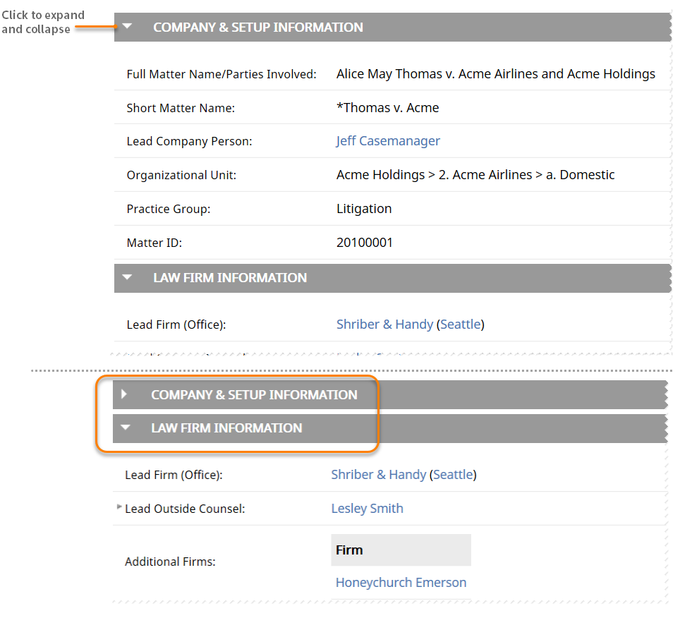 Some pages have section headers that can be expanded and collapsed. You can select the section header name to collapse the section.
