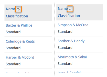To change the direction of the sorting within a column, select the same header again. For example, selecting the
