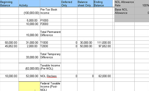 (Beginning Bal + Deferred Only + Balance Sheet Only) + (NOL Reclass) = NOL End Bal