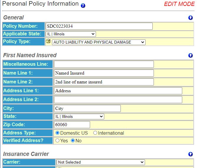 2. Name Line 1 – First line of the Insured Name. This defaults from the previous screen.