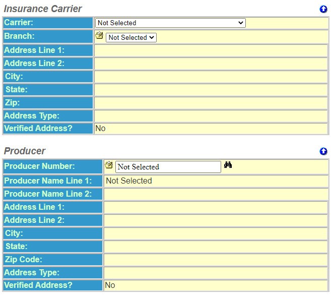 1. Producer Number – The number you have assigned your Producer or Agent. You can select this from a list by selecting the binoculars icon. If you have supervisor rights, you will see the file folder next to the number field. Selecting the file folder allows you to add a new