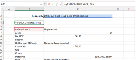 = EXTDCGetData (Request ID Range, Output Range) | Not available |