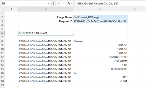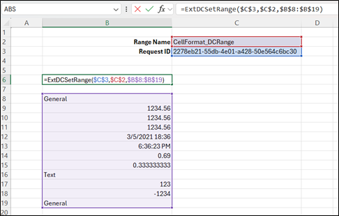 =EXTDCGetRange(Request ID Range, Range Name, Output location) | =DCGetRange(Request ID Range, Range Name, Output location) |