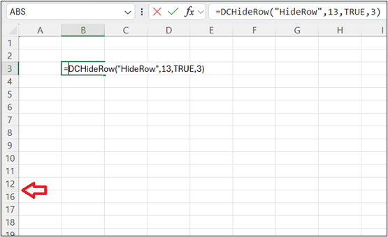 =DCHideRows(WorksheetName, Hide, Rows)