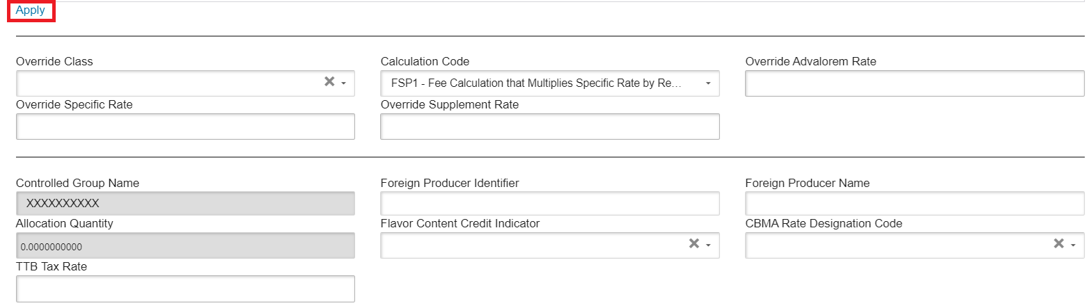 Flavor Content Credit Indicator | If the article is spirits, an indication that the Importer used an eligible flavor content ‘credit’ rate in the determination of the actual effective tax rate used to determine the tax amount. |