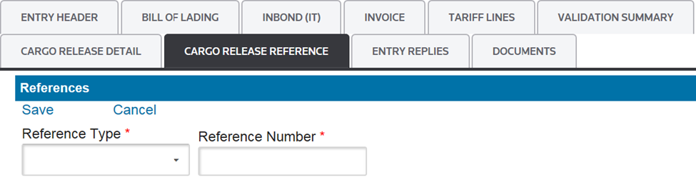tab provides reference data pertinent to the processing of the ACE Cargo Release. This grouping is used to provide reference data pertinent to (or required for) an ACE Cargo Release filing, but not for an ACE Entry Summary filing.