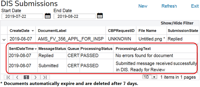 screen is used for submitting documents to DIS. In order to utilize this functionality, the filer profile must be set up on the CBP side to accept DIS submissions. Please reference the DIS User Guide for additional details on the use of this functionality.