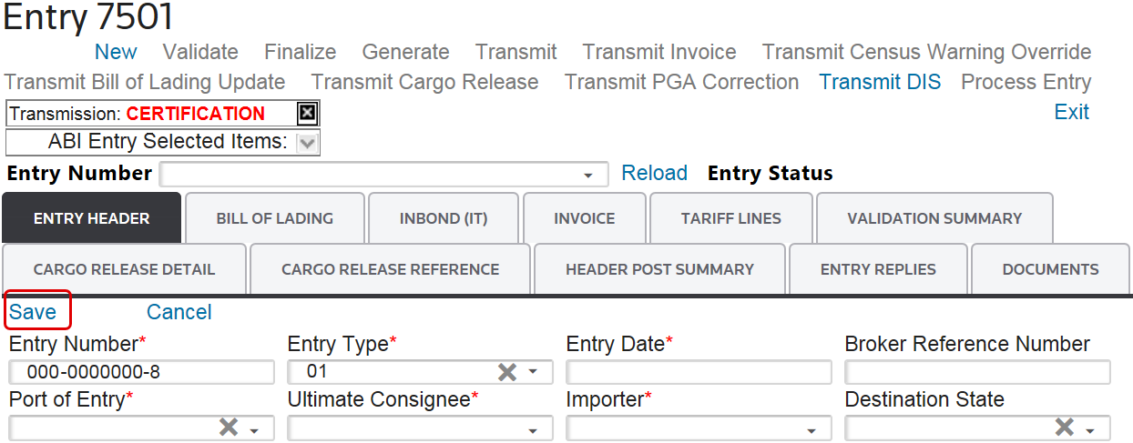 . “Save” must be clicked for each tab in order to save all data in the entry.