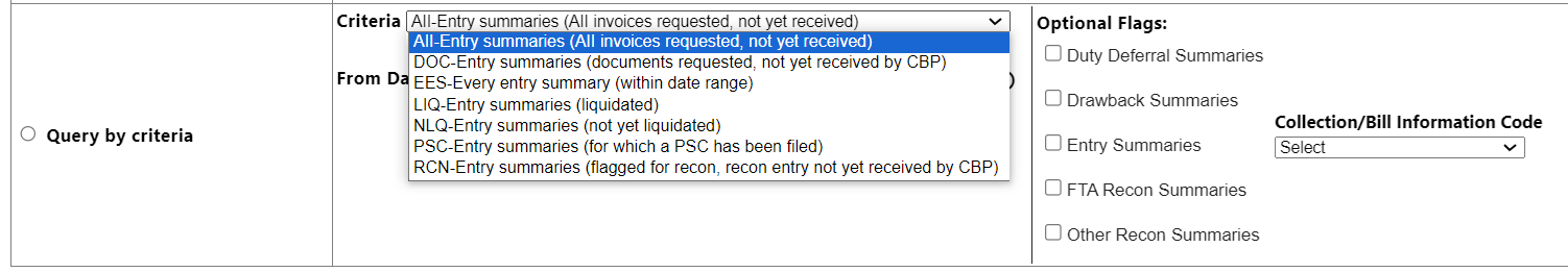 when you are ready to run the query. After that, the query will be transmitted to CBP. A reply is normally received within five minutes.