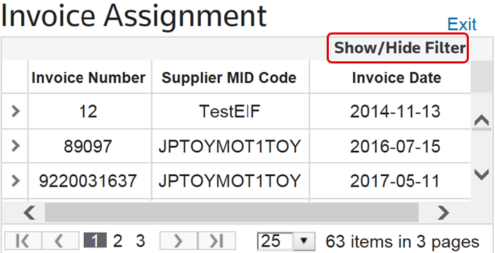 Filtering the Invoice Assignment Screen