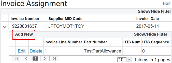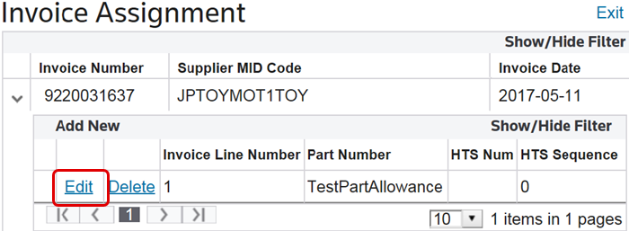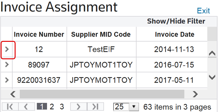 Select an invoice from the “Invoice Assignment” screen and click the expansion arrow on the far left.