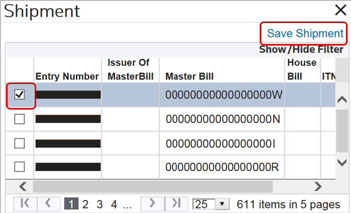 To assign a new or edited record to a shipment, select a line item and then click its corresponding