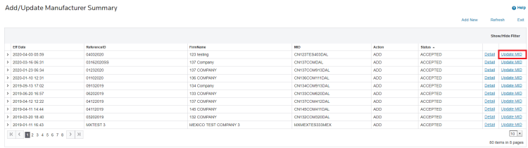 After a record has been accepted, you can update the Manufacturer ID (MID) as needed. This is done by clicking