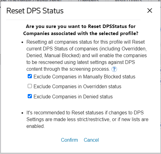 Provides a list of only blocked records. This is the best filter for acting on past searches that have been blocked. The system does not show duplicate searches with the same data, but only shows the most recent screening. Overriding or confirming a denial on a search on this grid will remove the search, allowing it to operate as a “work queue”. |