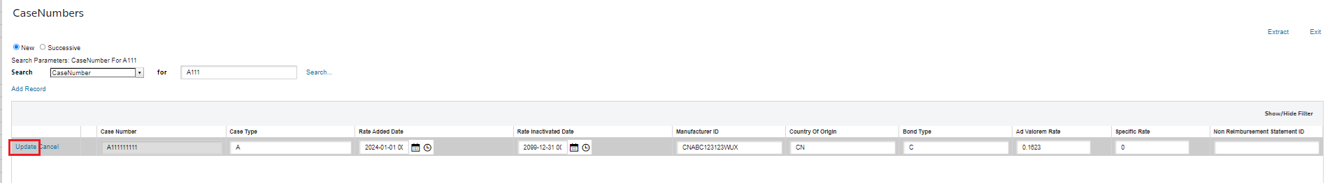 – If you do not store the AD Case Number/AD Duty Rate and/or CV Case Number/CV Duty Rate in the Item Master, you will need to update your Receipt Transaction records with this data. For more information on how to store this information, refer to FIFO Processing Correction (Edit Production Data).