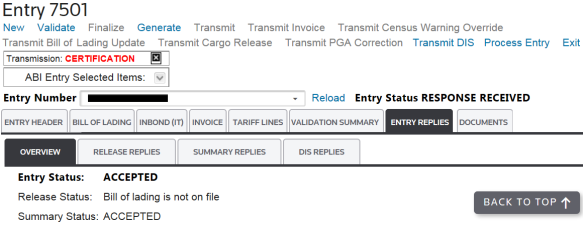 An updated release date from CBP. For paperless CF3461s, this update will appear almost immediately. If documents are required, the user will have to submit the paperwork to CBP before any update messages are received.