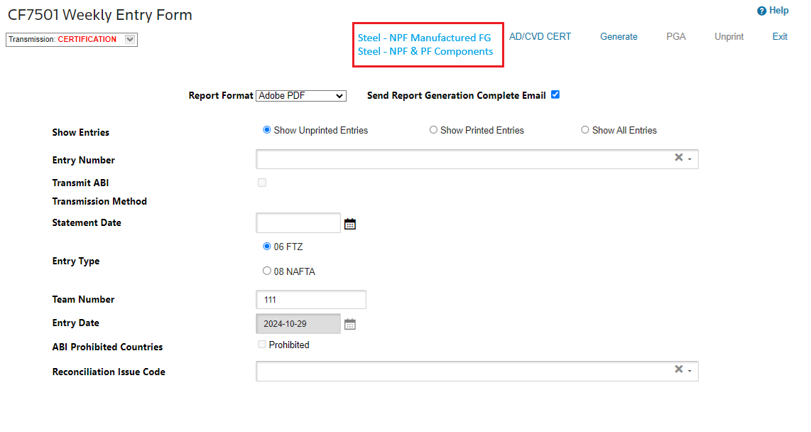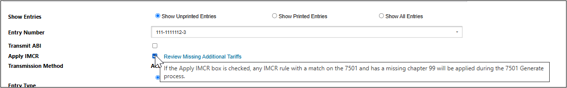 . This lookup will run validations against your Unprinted 7501 to identify any potentially missing additional tariffs from the entry. You can then add any new IMCR rules you would like, and we will apply these new rules during your next 7501 generation if you check the