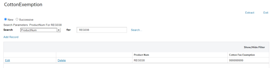 To perform a search for a specific Product Number or Cotton Fee Exemption.