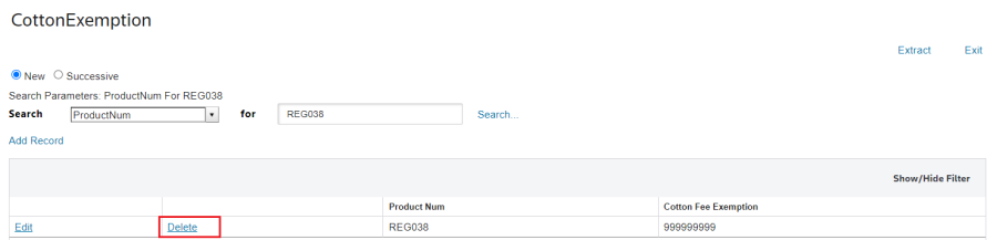 DELETING AN EXISTING COTTON FEE EXEMPTION