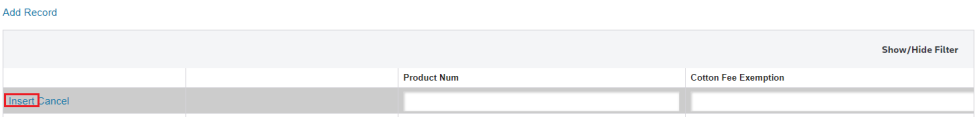 2. Enter the new Cotton Fee Exemption data and click