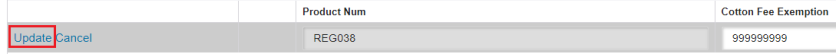 Information that is provided for update includes Product Number and Cotton Fee Exemption. This data is used for Customs reporting purposes.