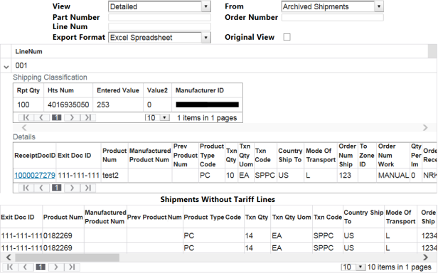 Customers that have request that the ShipPCLinks feature be turned on will see a slightly different layout. The new layout shows line level detail of receipts, shipments and provides clickable links to move between the details of the 214 and entry.