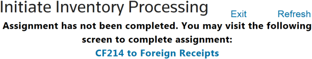 screen will result in an error message with a link to the assignment screens necessary to ensure each transaction in processing is properly assigned.