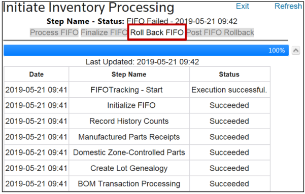 Step Name – Status: FIFO – Completed