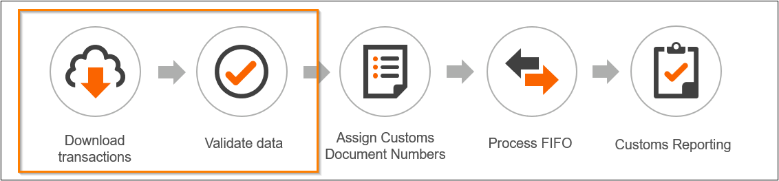 Preparation is the first step of the FTZ Daily Processing and involves loading the daily FIFO transactions into production tables for processing, and then validating the data to ensure all information is populated as required. When looking at the daily processing flow below, Preparation represents the first two steps and the following section details those steps: