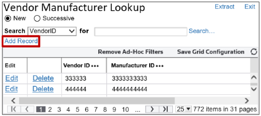 FTZ Management: Maintenance - Vendor Manufacturer Lookup (Adding, Modifying)