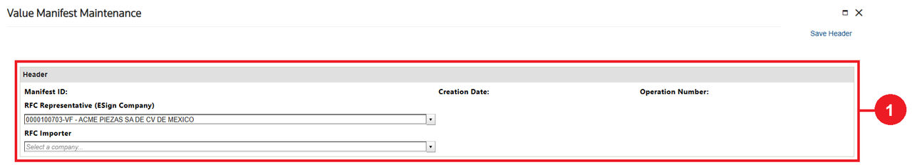 The Value Manifest Maintenance screen has 3 sections in which the data is organized according to the authority's requirements.