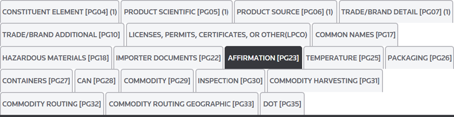 Compliance Code | A code used to affirm compliance with FDA requirements. If the merchandise is subject to the Bioterrorism Act (BTA), use this field to report the appropriate affirmation of compliance information not reported elsewhere. For a list of valid codes, refer to Appendix PGA (Food & Drug Affirmation of Compliance Codes). |
