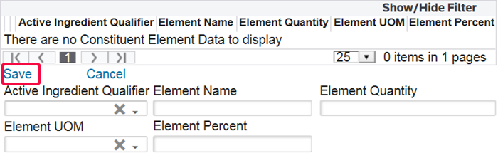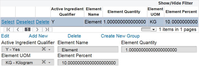 Element Name | The specific name of the ingredient or product/component of an ingredient. |