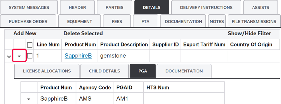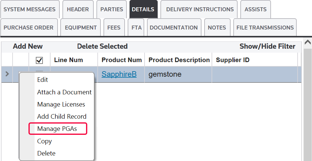 Companies can choose to generate a report of the PGA data associated with each detail record on the shipment.